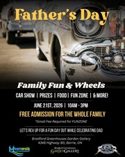 Celebrate Father’s Day like never before at our very first Family Fun and Wheels event on June 21st from 10am-3pm at Bradford Greenhouses in Barrie! Bring the whole family for an unforgettable day filled with classic cars provided by Barrie Thunder Classics, thrilling prizes, food, and endless fun for everyone.