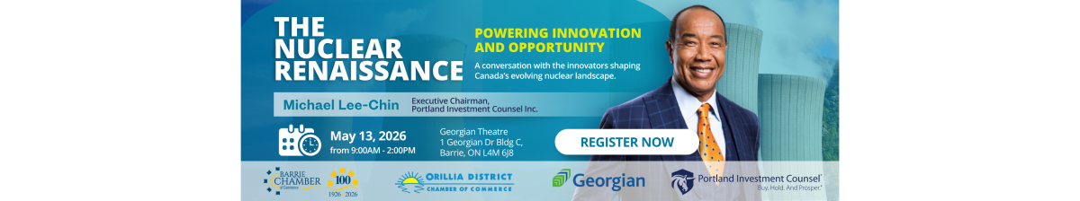 Join the Barrie Chamber of Commerce, the Orillia Chamber of Commerce, and Georgian College for The Nuclear Renaissance, a high-level forum exploring Ontario’s leadership in nuclear energy and nuclear medicine, and what it means for businesses, workforce development and regional growth.
